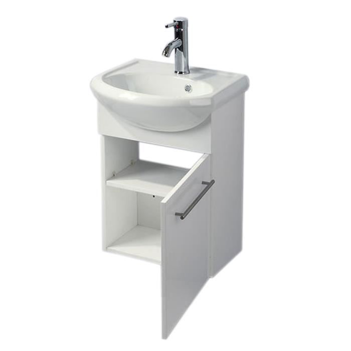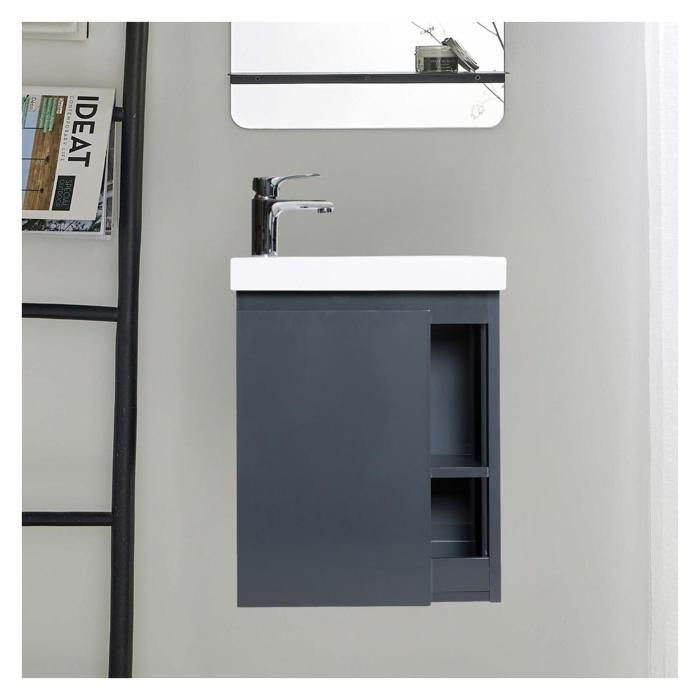 Meuble Lave Mains Blanc Et Vasque En Resine Noire 44cm Mini