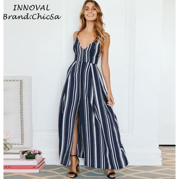 Nouveau Rayures Robe Longue D Ete Femme Epaule Nu Dos Nu