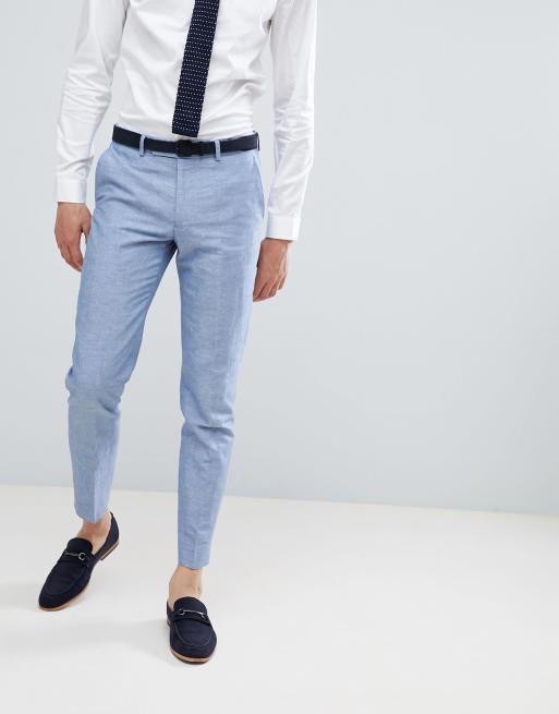 Moss London Skinny Linen Wedding Suit Pants In Blue Asos