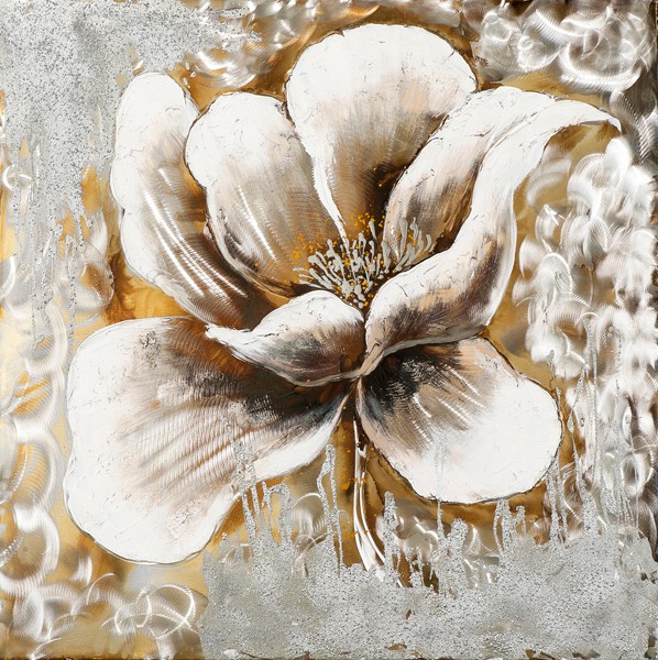 Tableau Fleur 70x70 Argente Dore Ajout D Elements Metal En Relief