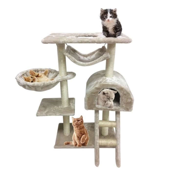Arbre A Chat 4 Couches Avec Petit Hamac Couleur Beige Populaire