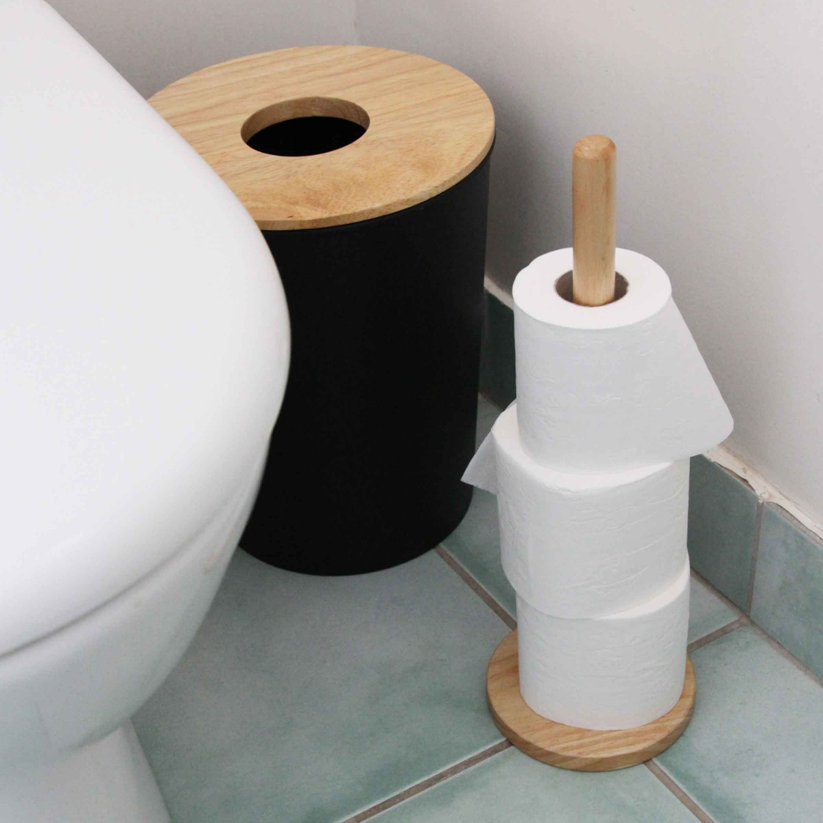 Poubelle De Salle De Bain Wc En Plastique Noir Et Couvercle Bois