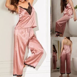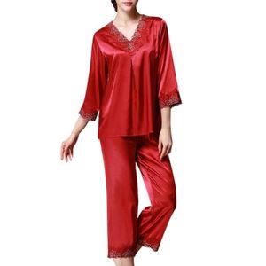 2 Pieces Pyjamas En Satin De Soie Femmes Vetements De Nuit