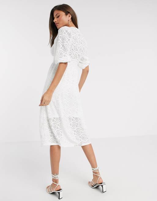 River Island Robe Babydoll Mi Longue Col V En Broderie Anglaise