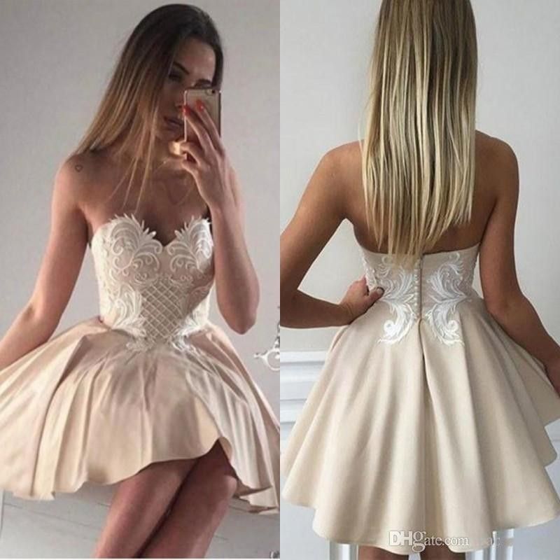 Acheter 2018 Champagne Chic Courte Dentelle Appliqued Robes De
