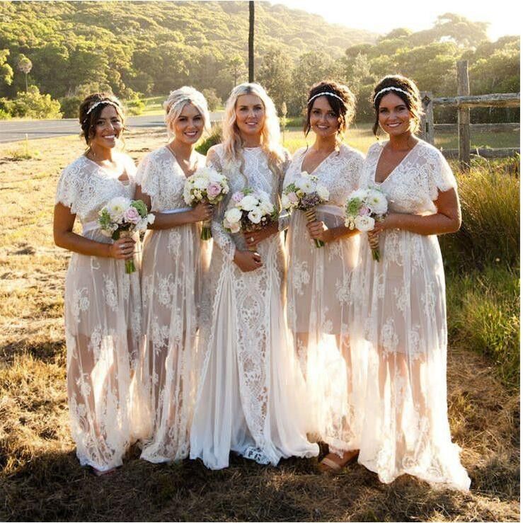 Acheter 2019 Ete Robes De Demoiselle Dhonneur Dentelle Pure Boheme Col En V Manches Courtes Plus La Taille Boho Robes De Mariee Sur Mesure Robes De Demoiselles