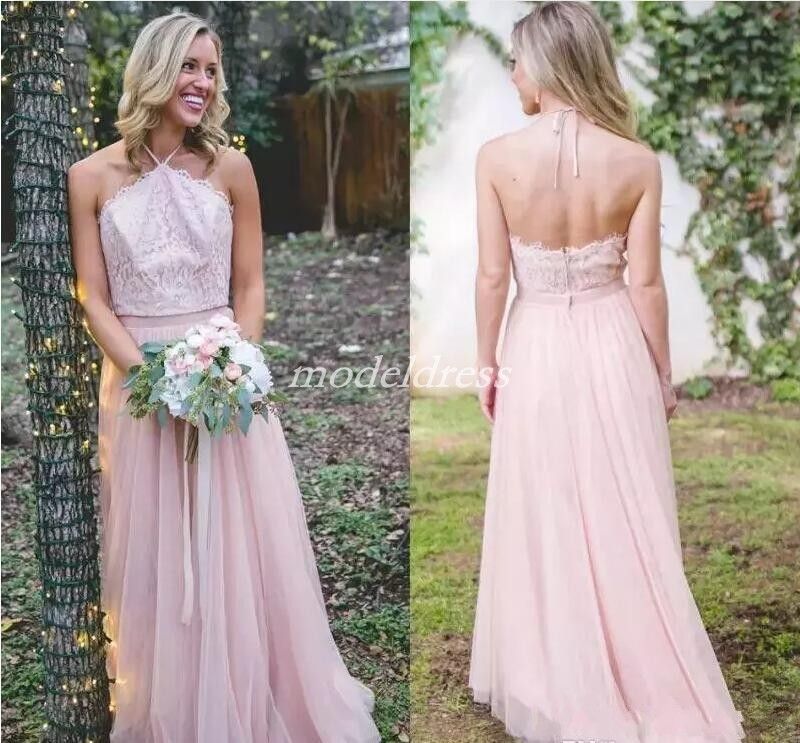 Acheter Robes De Demoiselle Dhonneur Rose Bebe Boheme 2019 Halter