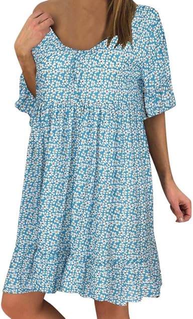 Robe Longue Femme Ete Manche Courte Ample Robe Droite Fluide