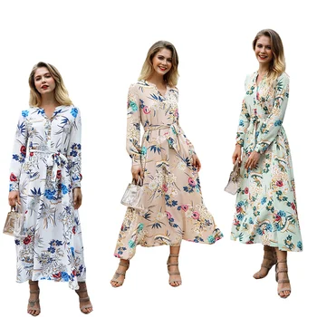 Acheter 2020 Pas Cher Dete Dimpression Florale Longue Robes De