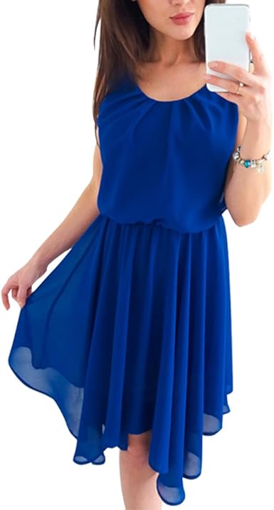 Aswinfon Robe Femme Ete Mi Longue Sans Manches Mousseline Col Rond