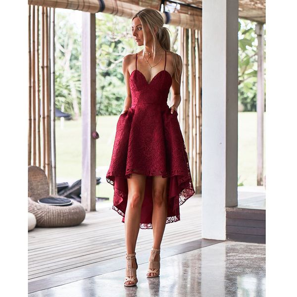 Acheter Sexy Night Club Robes De Soiree Pour Les Femmes De La Mode Col En V Dentelle Banquet Robe Claret Dos Nu