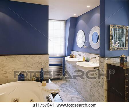 Bleu Tub Plancher Salle Bains Bain Maitre Carreau Coin