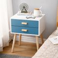 Table De Chevet Style Scandinave Avec 2 Tiroirs Table Nuit Bleu