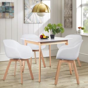 Lund Ensemble Table A Manger 4 Personnes Style Industriel Decor Chene 4 Chaises Simili Blanc L 100 X L 100 Cm
