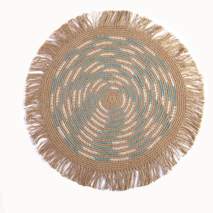 Set De Table Rond Jonc De Mer Et Coton Vert