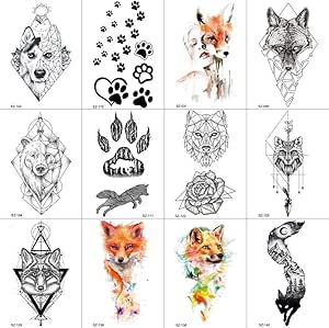 12 Feuilles Impermeable Animal Series Temporaire Tatouage