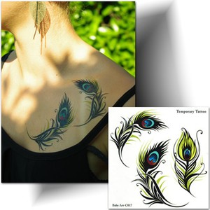 Peacock Feather Temporary Tattoo Ephemeral Sticker Fake