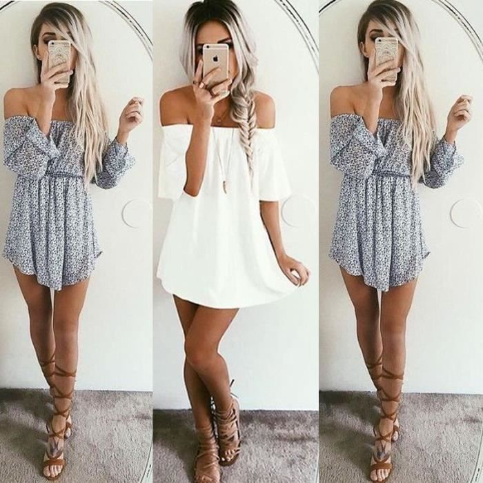 Robe D Ete A Epaules Denudees A Manches Courtes Et Robe D Ete A