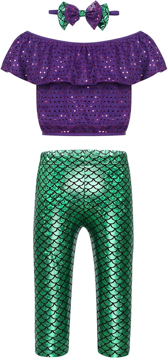 Ranrann 3pcs Ensemble De Vetements Enfant Fille Ete Tenue Paillette Sirene Costume Bebe Deguisement Princesse Bandeau Haut Volants Court Debardeur Sport Legging 18 Mois 6 Ans Amazon Fr Vetements Et Accessoires