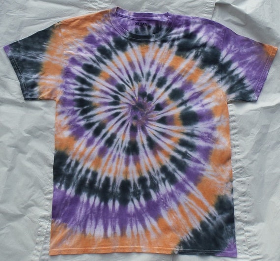 Tie Dye T Shirt Classic Spiral Orange Purple And Black 100 Etsy
