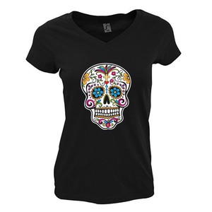 Yonacrea T Shirt Femme Col V Noir Tete De Mort Mexicaine Amazon
